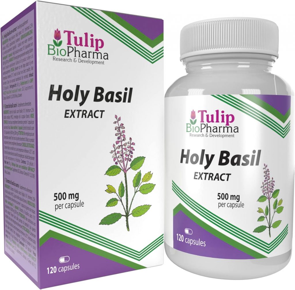 Basilic Tulsi sacré 5000mg Equivalent (500mg d’extrait 10:1) 120 Capsules, très fort, sans gluten, sans OGM, sans agent de remplissage