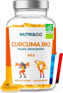 NUTRI & CO Curcuma BIO Gélules – Brevet Français TurmiPure Gold® Haute Absorption 300mg – Sans Pipérine ni Poivre Noir – Antioxydant Naturel & Articulations – 60 Capsules Vegan – Fabriqué en France