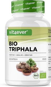 bio – Haute dose de 2000 mg (500 mg par gélule) – 365 gélules – Poudre de Triphala de l’Inde : Haritaki, Amalaki, Bibhitaki – Sans additifs – Vegan